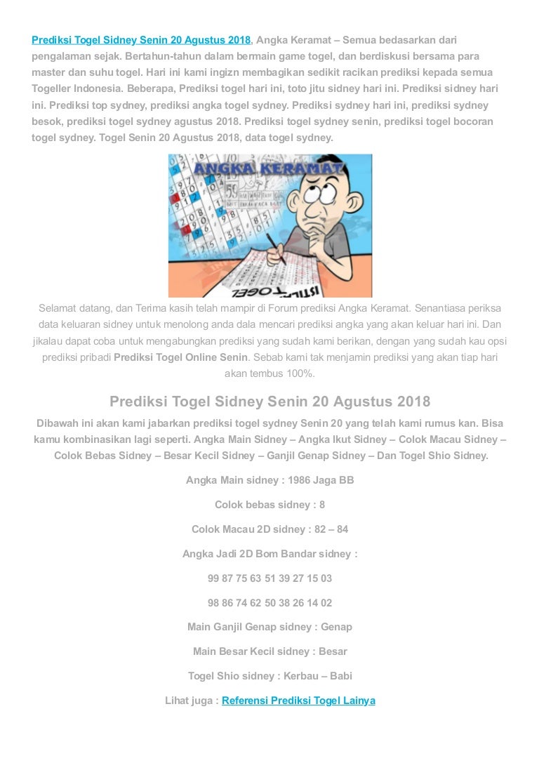 Prediksi togel sidney senin 20 agustus 2018 angka keramat